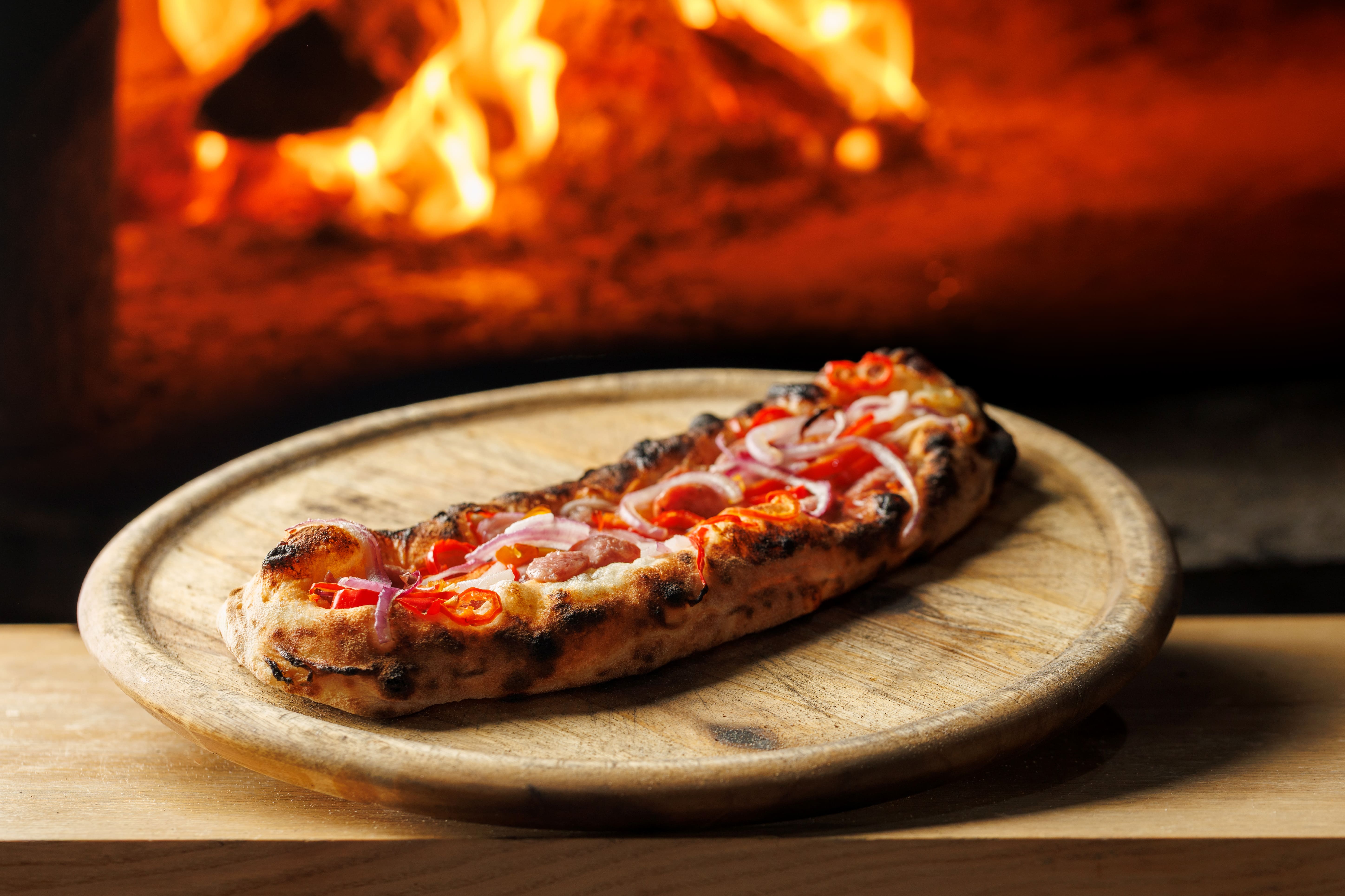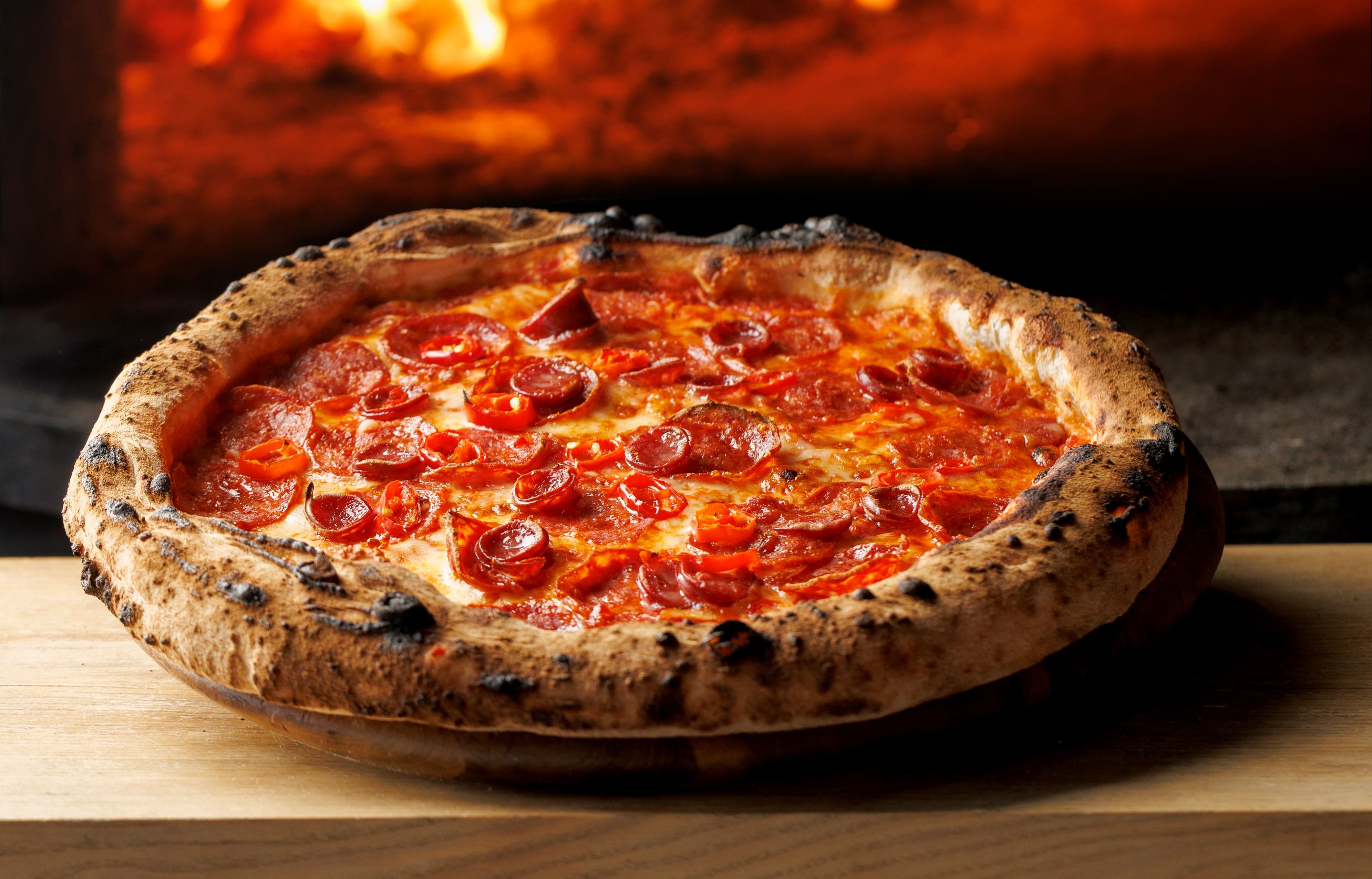 Sos Marinara, mozzarella, salam picant, cabanos, ardei iute.
