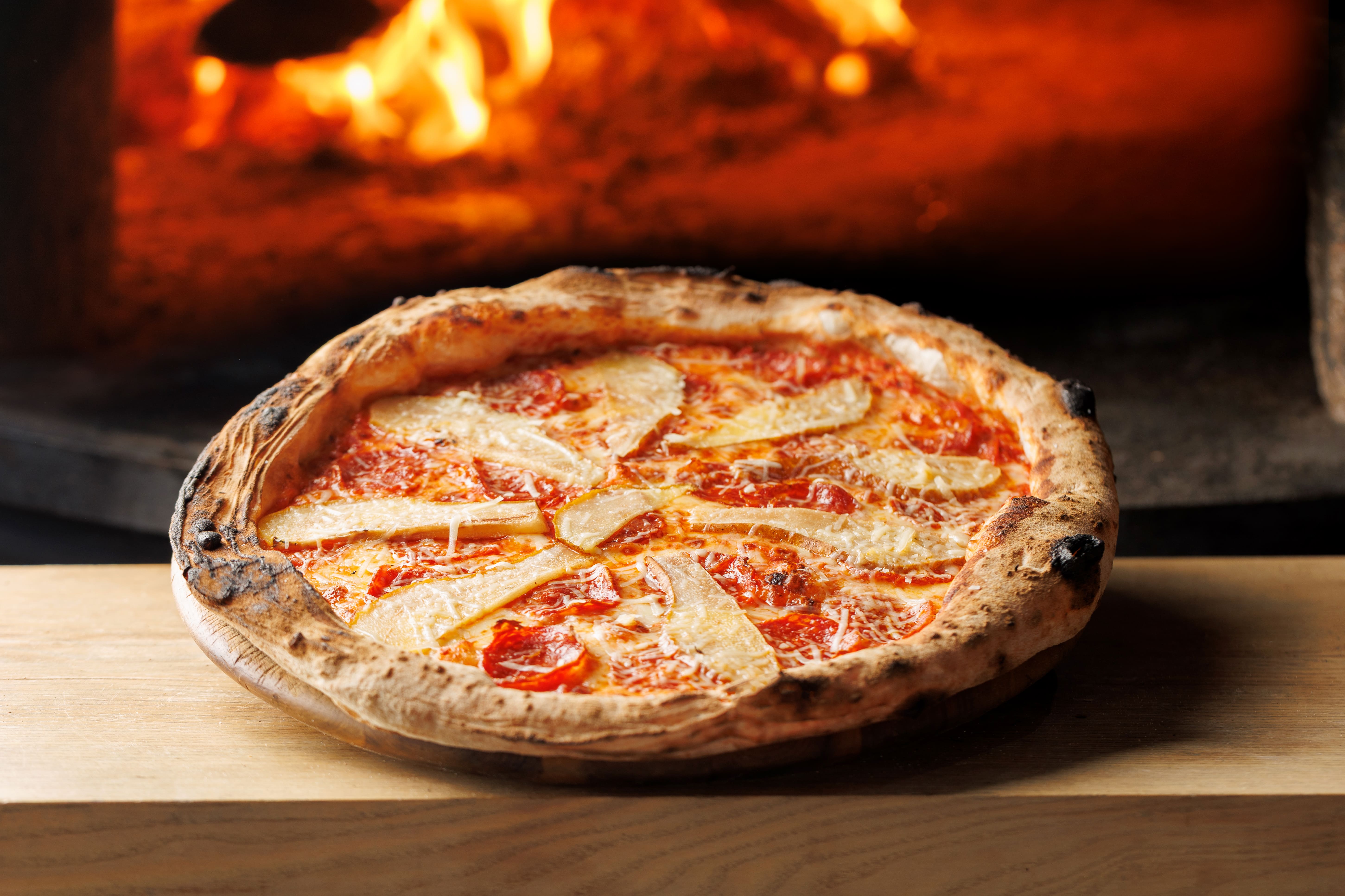 Mozzarella, sos marinara,salam picant,pere,parmezan