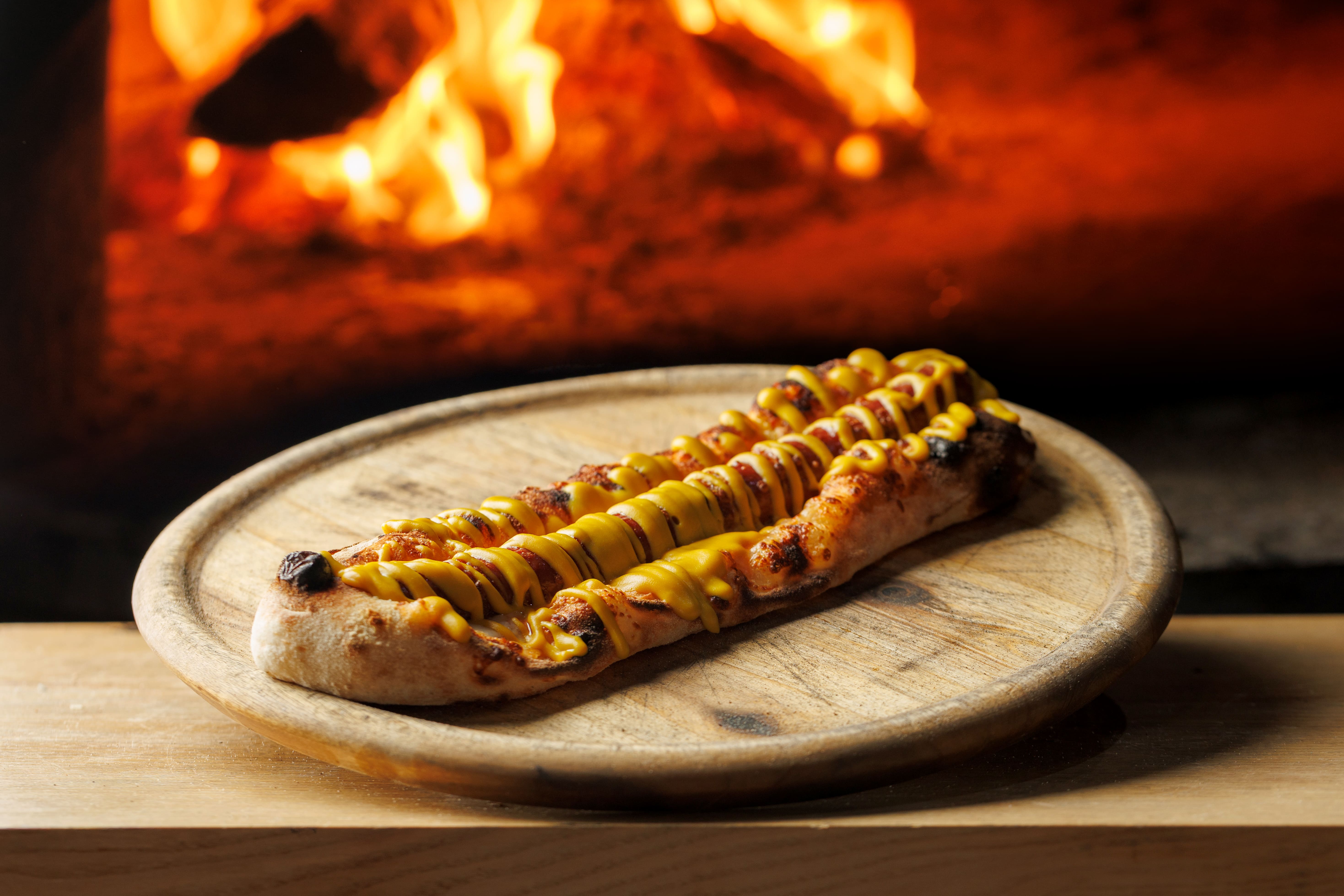 Mozzarella, sos marinara, cârnăcior vânătoresc, muștar